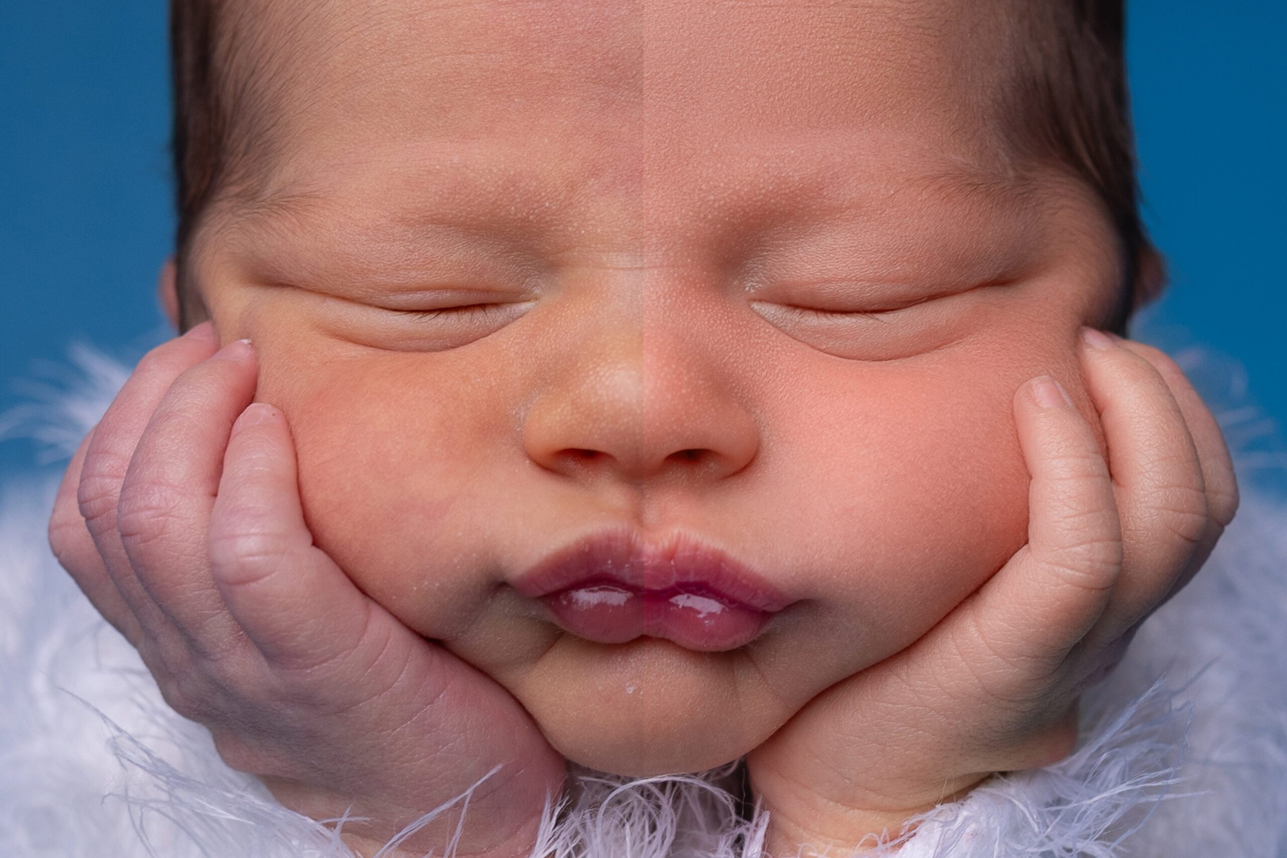 Delicate skin retouching for newborns and maternity images, reducing redness, blemishes, and temporary skin imperfections while preserving natural texture and realism.