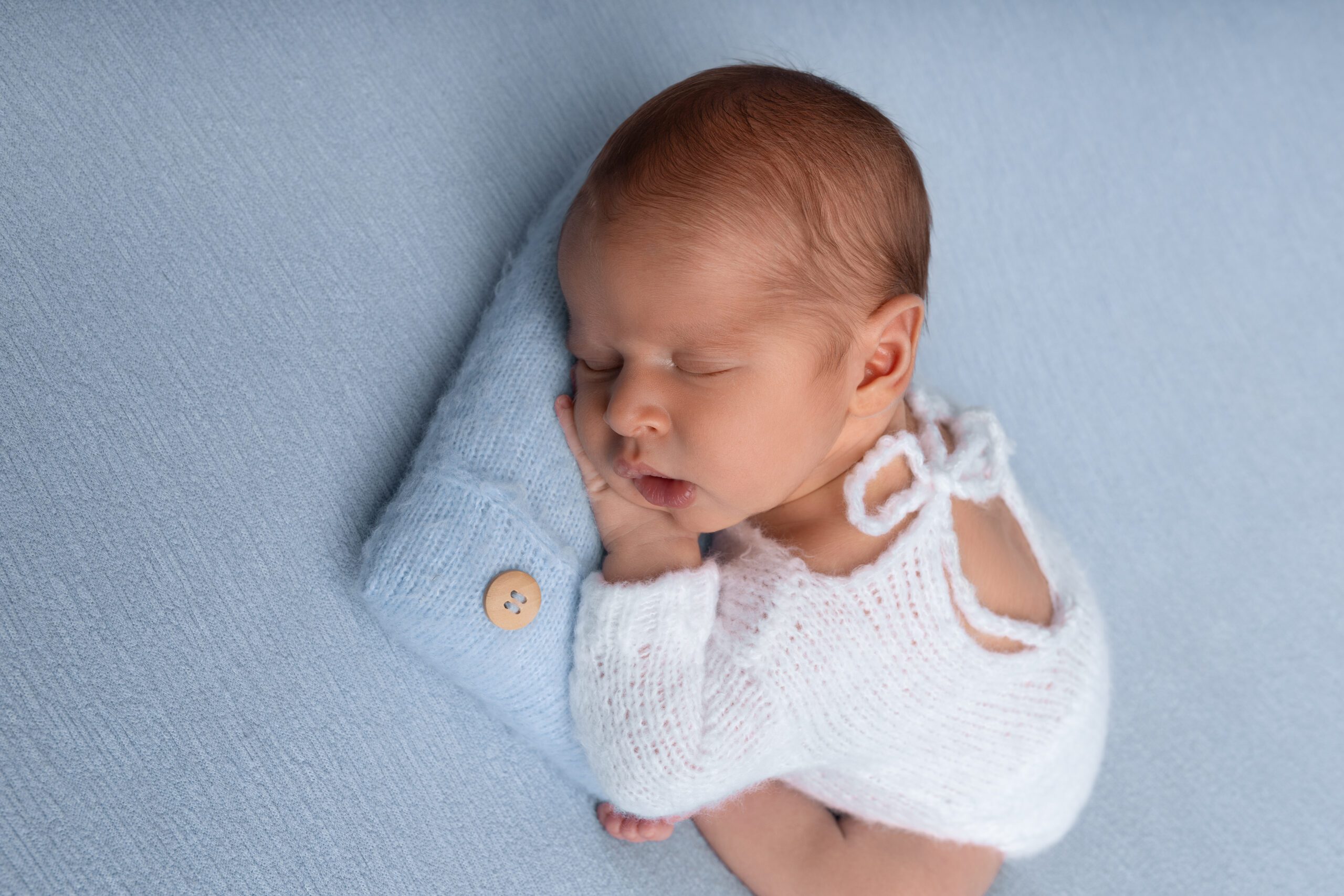 Delicate skin retouching for newborns and maternity images, reducing redness, blemishes, and temporary skin imperfections while preserving natural texture and realism.